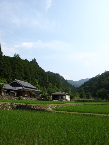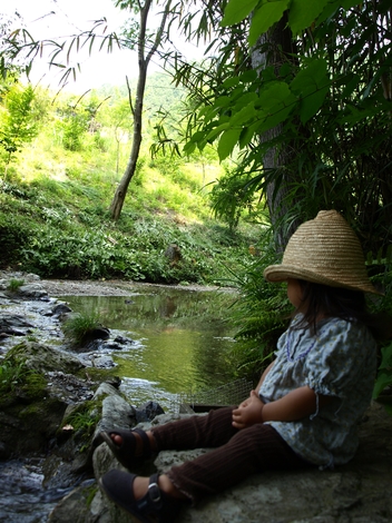ちびっこ娘はじめての川遊び。 田んぼの細い畔道も渡れたね。